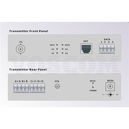 Video & Audio & Data Fibre Optic Converter VOS-1110FFDT/R provides for the digital transmission of 1-Channel Composite Video and 1 Simplex audio and 1 Duplex data. Data support RS485, RS232, RS422 protocols. Ideal for Broadcast /Studio, CCTV audio and Professional AV applications. Stand-alone or rack-mount. All Video to Fibre Converter of VOS-1110FFDT/R come in an insert card version. The cards can be inserted into our 14-slot, 19inch 4U or 6U rack-mountable card cage (VOS-CH04 or VOS-CH06). Single-Mode or Multi-Mode, VOS-1110FFDT/R can support FC /PC or ST/PC Optical connector, can be used in Daisy-Chain system (Need to customize). The Transmission distance range according to the Optical Budget. Manufacturer's standard is: Single-mode 20km or Multi-mode 2km.