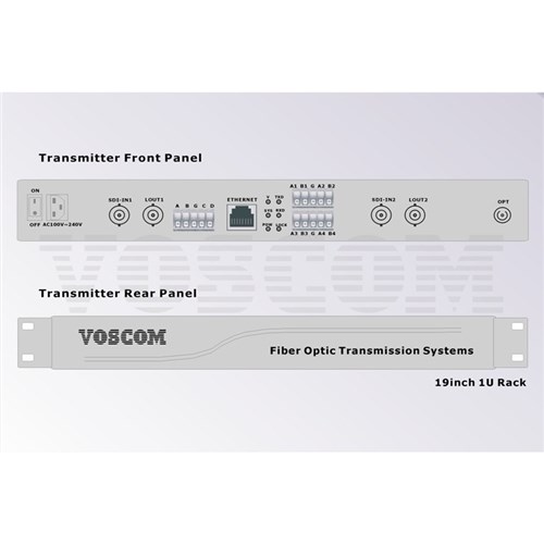 3G-SDI Fibre Transceiver VOS-2H3G-ADT/R provides for the digital transmission of 2-Channel uncompressed 2.97Gbps 3G-SDI (SMPTE 424M), 1.485 Gbps HD-SDI (SMPTE 292) or 270 Mbps SD-SDI (SMPTE 259M) 1080P HD video over fibre, support 2 duplex analog audio and 1 duplex RS232/RS485 data, also support one loopback output for local display, and dual outputs for two displays in the remote end. This unit only can support 19inch 1U Rack. Single-Mode or Multi-Mode, VOS-2H3G-ADT/R can support FC/PC or ST/PC optical connector, the transmission distance range according to the Optical Budget. Manufacturer's standard is: Single-mode 20km, Multi-mode 300m.