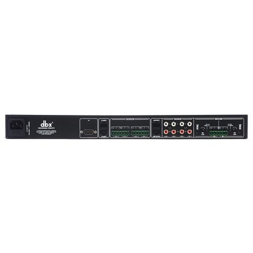 With 6 inputs and 4 outputs the dbx ZonePRO® 641 provides flexible signal routing, powerful DSP processing and multiple control interfaces for Commercial Audio applications. Designed to offer superior system sonic performance and flexibility, the 641/641 deliver the highest quality tools available. Even the input and outputs connectors were chosen for their standard usage and reliability. The ZonePRO products offer Euroblock connectors for balanced signals and RCA connectors for interfacing with consumer equipment often used in commercial applications; there is also a simple analog input buss that allows inputs to be sent from one unit to the next for unit and job scalability. The 641 and 641 provide every necessary processing tool, from the input processing like gain control and EQ available on all inputs to highly sophisticated and specific functions such as selectable paging microphone processing including Gating, De-Essing, Auto Gain Control, Compression and Feedback Suppression. The heart of the ZonePRO products is the Routing module that provides of course Primary Source Selection but also Source Ducking for Paging and Priority Override. The outputs also offer a wealth of processing designed for commercial applications like our patent-pending AutoWarmth® function that was co-developed with JBL to provide natural low frequency extension at any signal level. Each output also offers EQ, Bandpass and Crossover filters, Limiting and Delay for system optimization. With the ZonePRO® every tool is at your disposal to maximize the response of your system. Beyond processing, the ZonePRO® products offer multiple forms of control to further extend the versatility of your system. From easy-to-use wall panel Zone Controllers for standard end-user functions like source select and volume control to advanced system control including a built-in Real Time Clock that can provide programmable system changes throughout the day or week. For system setup and monitoring the ZonePRO Designer software provides an intuitive interface and a speedy setup Wizard for configuring and editing all system parameters. The ZonePRO® 641 will take your Commercial Audio system to the next level with advanced processing, versatility and control.