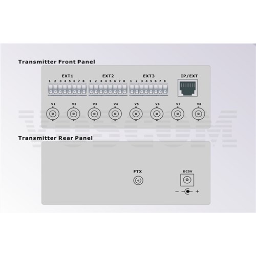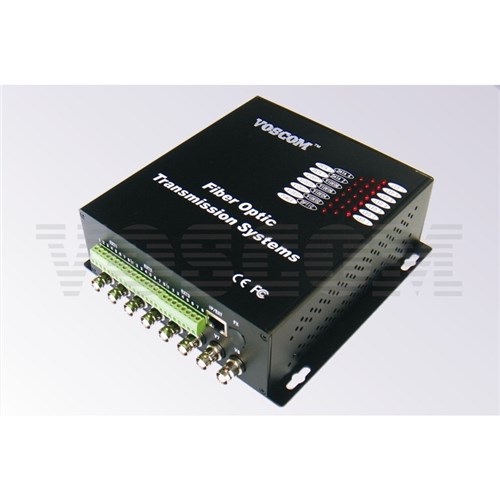 Fibre Optic Video Extender VOS-8040FDT/R provides for the digital transmission of 8 Channels Composite Video, and 4 Duplex serial data, and serial data support RS485, RS232, or RS422, no audio. Stand-alone or rack-mount. All CCTV Fibre Optic Extender of VOS-8040FDT/R come in an insert card version.The cards can be inserted into our 14-slot,19inch 4U or 6U rack-mountable card cage (VOS-CH04 or VOS-CH06). One 8-Channel video card require two slots widths. Single-Mode or Multi-Mode, VOS-8040FDT/R can support FC/PC or ST/PC Optical connector, can be used in Daisy-Chain system (Need to customize). The Transmission distance range according to the Optical Budget. Manufacturer's standard is: Single-mode 20km or Multi-mode 1.2km.