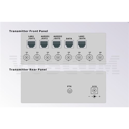 Audio Visual Exntender over Fibre VOS-8800FDT/R provides for the digital transmission of 8 Channels Video and 8 Duplex audio. Ideal for Broadcast/Studio, CCTV audio and Professional AV applications. Stand-alone or rack-mount. All units of VOS-8800FDT/R come in an insert card version.The cards can be inserted into our 14-slot, 19inch 4U or 6U rack-mountable card cage (VOS-CH04 or VOS-CH06). One 8-Channel video and 8 duplex audio card require two slots widths. Single-Mode or Multi-Mode, VOS-8800FDT/R can support FC /PC or ST/PC Optical connector, can be used in Daisy-Chain system (Need to customize). The Transmission distance range according to the Optical Budget. Manufacturer's standard is: Single-mode 20km or Multi-mode 1.2km.
