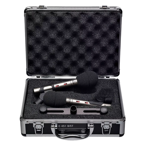 The C451 B is a reference small-diaphragm condenser microphone. With its airy sound, high overload limit and improved engineering details, the C451 B continues the success story of its predecessor, the legendary C451 EB + CK1 capsule. The roadworthy design around the handcrafted capsule and the low-noise pre-amp electronics ensure impressive results even under very harsh conditions. Selected from thousands of individual microphones, both microphones of the matched pair show a maximum variance of 1 dB at the frequency response and have identical sensitivity.