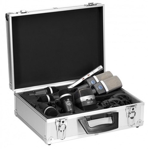 The AKG Drum Set Premium reference drum microphone set is a hand-selected collection of the highest-quality microphones for touring, live and studio applications. The rugged metal carry case houses a range of the best AKG microphones made for capturing miking drums while simultaneously ensuring safe transportation wherever you go.