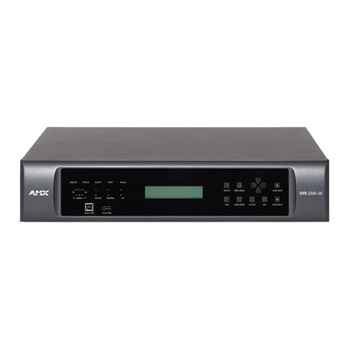 The AMX Enova® DVX-2265-4K 6x2+1 All-In-One Presentation Switcher is a unified audio, video, and control device that replaces the need for numerous individual components and eliminates the integration and reliability challenges that accompany them.