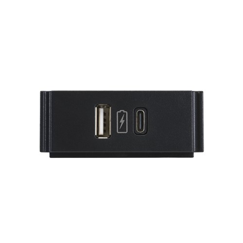 The AMX HPX-USBC-100 module provides both a USB-C and a USB-A connection with charging capability to the HydraPort® chassis. The power symbol on the module makes it easy for users to identify that power is provided. The HPX-USBC-100 is compatible with USB-C PD 3.0 power supplies up to 100W over USB-C, and up to 30W over USB-A. Power supplies not included.