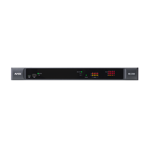 The AMX MU-2300 MUSE Automation Controller is a powerful, secure, and reliable device that provides a dedicated computing resource running HARMAN Professional's AMX MUSE automation platform. The MU-2300 can simultaneously process a virtually unlimited number of scripts written in JavaScript, Python, or Groovy and natively supports Low-Code development with Node-RED.