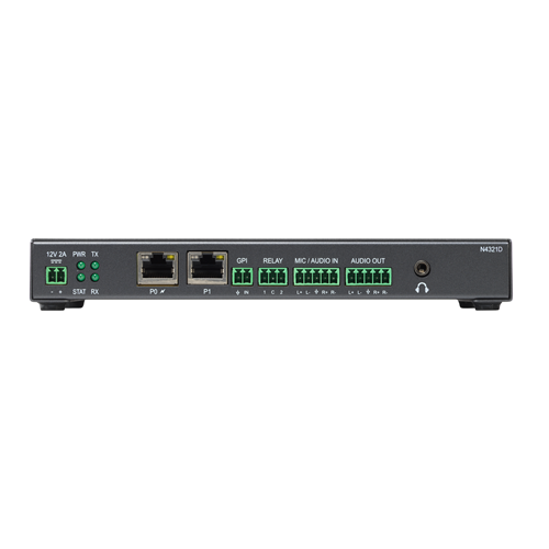 With two auto-sensing gigabit Ethernet ports, units can also be used to bridge low-latency multi-channel audio between separate networks. One Ethernet port is PoE for use with a PoE switch, eliminating the need for an external power supply.