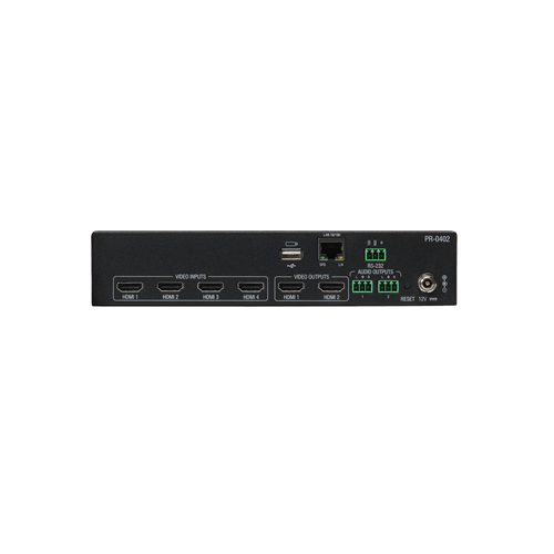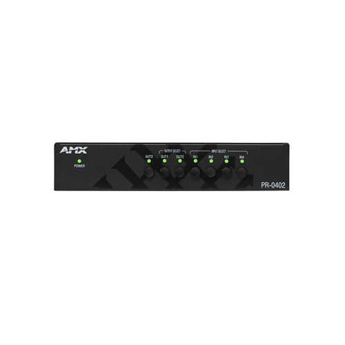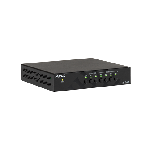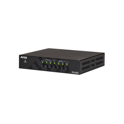 The PR-0402 supports high quality HDMI 2.0, HDCP 2.2, HDR10+, 36-bit per pixel Deep Color, and Dolby Vision. Automatic and manual switching modes plus onboard dynamic audio de-embedding offer maximum configuration flexibility. Combining a robust matrix switcher and a highly affordable price point, backed by over 30 years of industry-leading matrix switching experience, the AMX Precis PR-0402 can be trusted to deliver an exceptional switching solution.