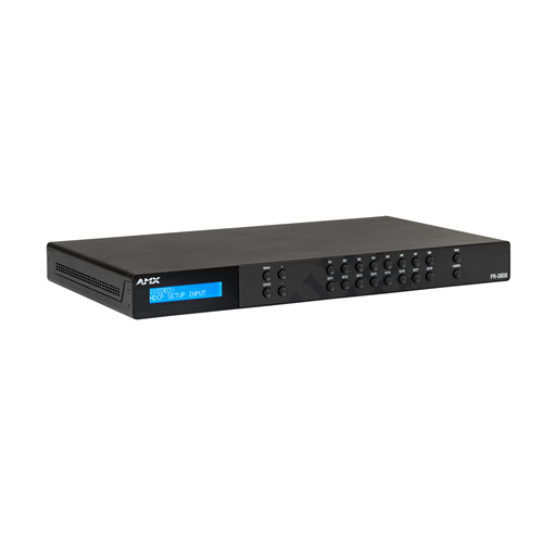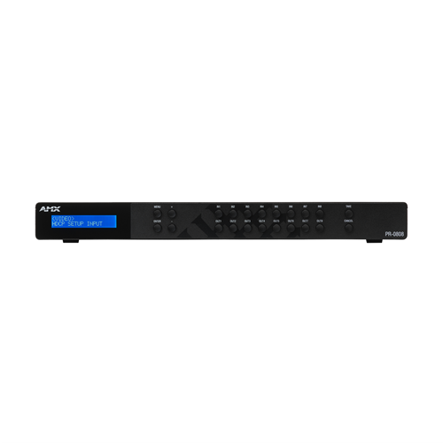 The PR-0808 supports high quality HDMI 2.0, HDCP 2.2, HDR10+, 36-bit per pixel Deep Color, and Dolby Vision. Dynamic audio de-embedding and multiple open control options offer maximum configuration flexibility. Combining a robust matrix switcher and a highly affordable price point, backed by over 30 years of industry-leading matrix switching experience, the AMX Precis PR-0808 can be trusted to deliver an exceptional switching solution.