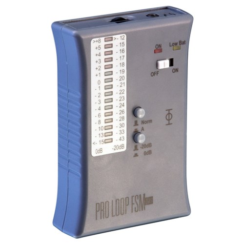 The PROLOOP FSMplus is a measuring device that measures the magnetic field strength of induction loop systems according to IEC 60118-4:2006 and BS 6083, Para. 4. The device delivers reliable RMS values on the output level, response frequency, AGC function (Automatic Gain Control), distortion and background noise in the induction looped tested. In addition, it enables the user to make an acoustic evaluation of the sound using signal reproduction via earphones.