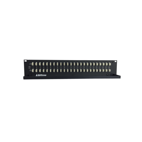 Product Features:• Bittree® E3 bulkhead panel in 2 RU with 2x24 connector configuration• Panels come pre-populated with connector modules• Mating hardware included:• 96 x E3M connector housings (3-pin male)• 288 x EPIN crimp contacts (gold-plated)• Two 3" (7.62 cm) deep rear lacing bars included (both are removable)• Alternative 6" (15.24 cm) deep lacing bars available; please make a request at checkout if interested Panel Features:• Formed aluminum front panel with a durable black powder-coat finish • Silk screened circuit numbering on both the front and rear
