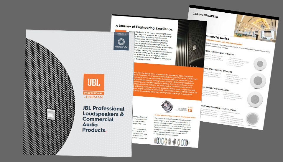 Did you know JBL is owned by HARMAN Professional, and their sister brands include Crown, BSS, dbx, AMX and AKG? This means that  JBL products can be supplied as part of an integrated solution which includes zone processors, amplifiers, microphones, video control systems and more.