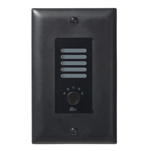 The AC-5S contains a single five-position resistor ladder which is useful for source selection or preset recall. The AC-5S requires one GPI. Therefore, up to 12 AC-5S controllers can connect to a single Soundweb London device, and up to 36 AC-5S controllers can connect to a single BLU-GPX.