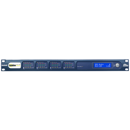 The Soundweb London BLU-120 offers configurable I/O and a high bandwidth, fault tolerant digital audio bus. The BLU-120 is configurable through HiQnet™ London Architect. A rich palette of logic objects and a “drag and drop” method of configuration provide a simple and familiar design environment. This processor features a low latency, fault tolerant digital audio bus of 256 channels which uses standard Category 5e cabling giving a distance of 100m between compatible devices. Fiber optic media converters can be used to increase the distance between devices to over 40km. Four card slots facilitate many different device I/O configurations. Each slot can accommodate any of six available I/O cards, including the Analog Input Card, Analog Output Card, Digital Input Card, Digital Output Card, AEC Input Card, and Telephone Hybrid Card. Each card supports four channels. Analog Input Cards provide software configurable gain in 6dB steps up to +48dB per channel and software selectable Phantom Power per channel. Digital Input Cards and Digital Output Cards process AES/EBU and/or S/PDIF audio and offer a variety of clocking and syncing options. (Further information about the I/O cards can be found on dedicated datasheets) Phantom Power, Sync, Signal Present and Clip information per channel is easily accessible, without the requirement for a PC, from clear front panel LED indication. Device-specific information such as Device Name, Device Type, Firmware Version Number, Time, IP Address and Subnet Mask is available from the front panel display. A bi-directional locate function allows devices to be identified both from and within HiQnet London Architect. 12 Control Inputs and 6 Logic Outputs allow the BLU-120 to be integrated with GPIO compatible devices. The Soundweb London Interface Kit, comprehensive documentation which details how Soundweb London systems can be integrated with third party control systems, is included within the installation of HiQnet London Architect. The BLU-120 and the other members of the Soundweb London family provide the building blocks of the perfectly tailored system solution.