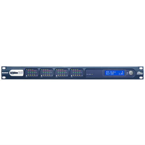 The Soundweb London BLU-160 offers configurable I/O, configurable signal processing and a high bandwidth, fault tolerant digital audio bus. The BLU-160 has open architecture which is fully configurable through HiQnet™ London Architect. A rich palette of processing and logic objects and a “drag and drop” method of configuration provide a simple and familiar design environment. This processor features a low latency, fault tolerant digital audio bus of 256 channels which uses standard Category 5e cabling giving a distance of 100m between compatible devices. Fiber optic media converters can be used to increase the distance between devices to over 40km. Four card slots facilitate many different device I/O configurations. Each slot can accommodate any of six available I/O cards, including the Analog Input Card, Analog Output Card, Digital Input Card, Digital Output Card, AEC Input Card, and Telephone Hybrid Card. Each card supports four channels. Analog Input Cards provide software configurable gain in 6dB steps up to +48dB per channel and software selectable Phantom Power per channel. Digital Input Cards and Digital Output Cards process AES/EBU and/or S/PDIF audio and offer a variety of clocking and syncing options. (Further information about the I/O cards can be found on dedicated datasheets) Phantom Power, Sync, Signal Present and Clip information per channel is easily accessible, without the requirement for a PC, from clear front panel LED indication. Device-specific information such as Device Name, Device Type, Firmware Version Number, Time, IP Address and Subnet Mask is available from the front panel display. A bi-directional locate function allows devices to be identified both from and within HiQnet London Architect. 12 Control Inputs and 6 Logic Outputs allow the BLU-160 to be integrated with GPIO compatible devices. The Soundweb London Interface Kit, comprehensive documentation which details how Soundweb London systems can be integrated with third party control systems, is included within the installation of HiQnet London Architect. The BLU-160 and the other members of the Soundweb London family provide the building blocks of the perfectly tailored system solution.