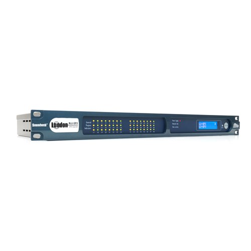 The Soundweb London BLU-GPX is a network-controlled GPIO expander which facilitates the cost-effective addition of Control Inputs, Logic Outputs, and Relays to systems requiring extra analog control/interfacing capability. The BLU-GPX features the same rich palette of Logic Objects found in other Soundweb London devices, two PoE-enabled Ethernet ports for communications and primary power, a 12VDC power connector for secondary power, a RS-232 port for compatibility with serial devices, a bank of user-configurable front panel LEDs, a user-configurable front panel LCD, a user-configurable piezo buzzer for audible indication, and locate functionality.