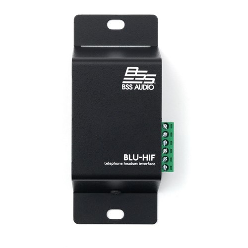 The BSS Audio BLU-HIF Telephone Headset Interface facilitates connection of the headset jack of a VoIP/digital phone to an AEC input and analog output of a Soundweb London device. The BLU-HIF therefore allows the VoIP/digital phone to be used as the dialing interface and hybrid for a conference system. This simple interface eliminates the programming requirements associated with third-party control systems, while providing a familiar and low-cost dialing interface to the end user. The BLU-HIF features an RJ-22 jack for connection to the headset jack of a VoIP/digital phone, a balanced input (Tx) for sending near-side audio, and a balanced output (Rx) for receiving far-side audio. While the BLU-HIF provides substantial isolation of the Rx and Tx signals, near-side audio will still be heard on the Rx channel due to the presence of side-tone. As such, BSS Audio recommends always feeding the Rx channel to an AEC input, as opposed to a standard analog input. The AEC algorithm will remove the side-tone. The Tx channel connects to a standard analog output. The wiring configuration within the headset jack of a VoIP/digital phone often differs, depending on the manufacturer. The BLU-HIF comes with two cables whose 4P4C RJ-22 connectors are compatible with the two most common wiring configurations found in the headset jack of VoIP/digital phones. The additional 2.5mm jack facilitates connection of two-way communication devices such as cellular phones to the Soundweb London device. This gives the end user the advantage of having an alternate communication path to the outside world, which is particularly useful as a backup to the main phone system.