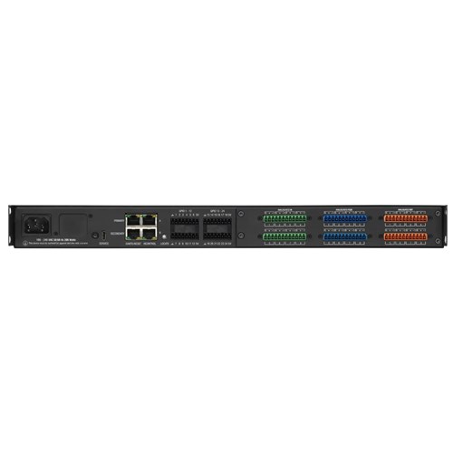 The 32e features 8x8x8 Analog or 16x16x16 AES3 audio channels; 32x32 Dante/AES67 networked audio I/O channels; 24 GPIO ports (fully flexible); enterprise-grade network security; studio quality 60dB microphone pre-amp on all inputs; high resolution DAC and ADC, primary and secondary Dante connections, redundant HControl ports; full-color, front panel LCD with metering; stereo AES3 on every audio connector; and more.