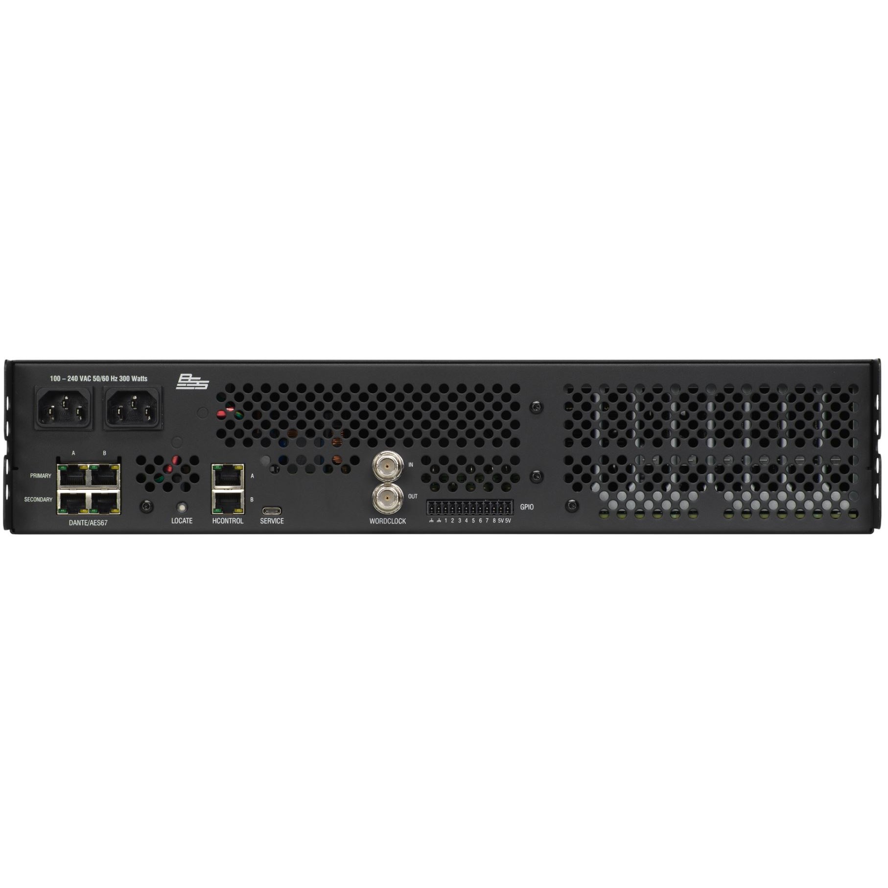 The 512p features 512x512 at up to 96kHz Dante/AES67 networked audio channels; enterprise-grade network security support; an onboard scripting engine developed by AMX; 8 GPIO ports (fully flexible); 160 AEC channels; 64 VoIP lines; high precision word clock and BNC clock (in/out); dual redundant power supplies, Dante and HControl; 128 channel internal media player with 1TB SSD; full-color, interactive front panel LCD; and more.
