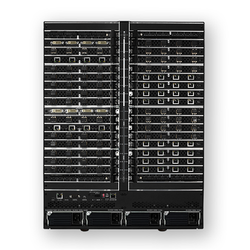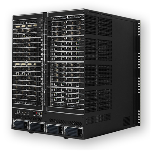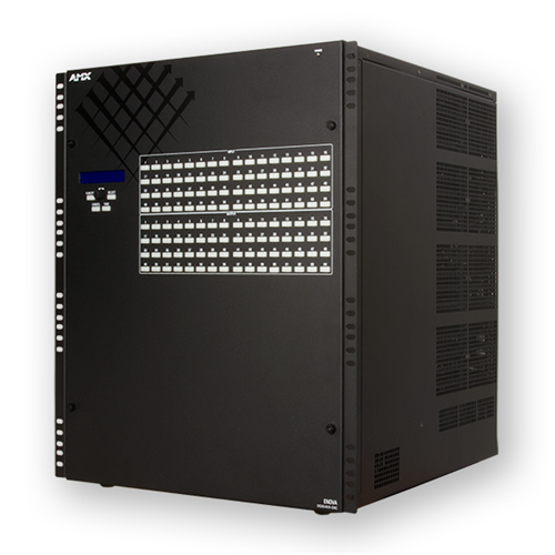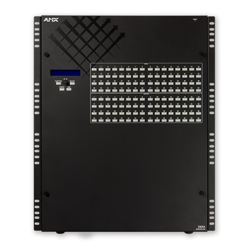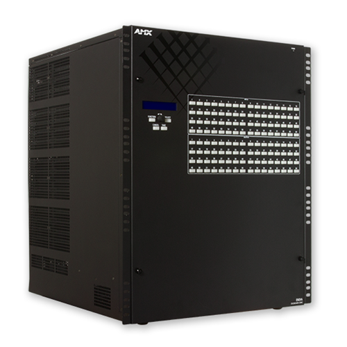 The new Enova DGX 6400 Enclosure (DGX6400-ENC) is a Digital Media Switcher that is ready to support 4K and Ultra High Definition (UHD) content. This robust solution includes a NetLinx® NX Integrated Controller, redundant power supplies and can be populated with Enova DGX video input and output boards in addition to optional audio -switching boards. There are 4 connections per video board, and each enclosure holds 16 video input boards and 16 video output boards for a maximum matrix of 64x64.