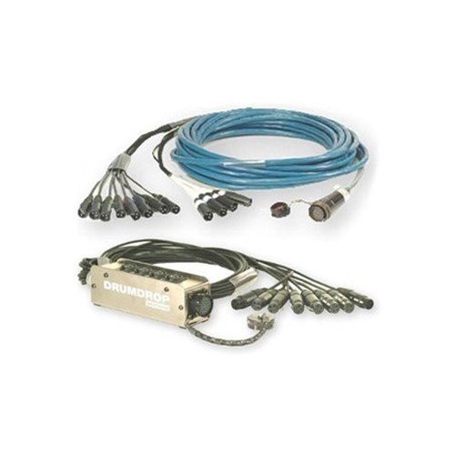 Then take the DrumDrop stagebox (pictured bottom) and prewire the drum kit - no mic cables necessary! Use two DrumDrop stageboxes in a festival setting to get miked up ahead when multiple sets of drums are on stage or will be rolled in on portable risers.