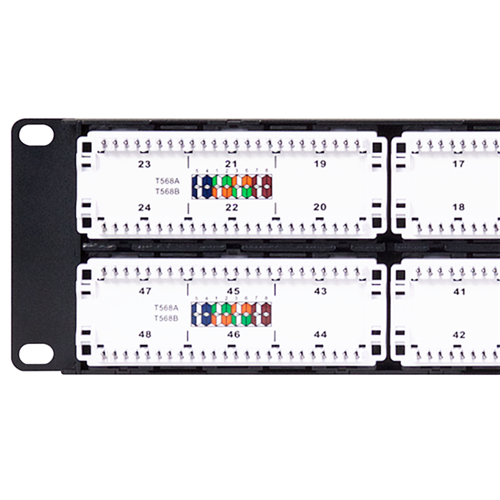 FLUSH MOUNT 2 ROWS OF 24 PORTS 2 RU CAT 6 RJ45 TO ID 110 FIXED 2 DESIGNATION STRIPS