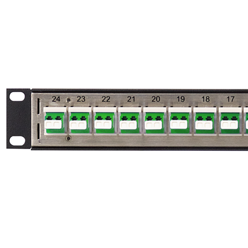 FLUSH MOUNT 1 ROW OF 24 COUPLERS 1 RU DUPLEX LC TO LC APC GREEN 1 DESIGNATION STRIP