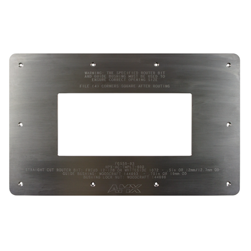 The HydraPort Installation Router Guide HPX-AC-TMPLT-900 is a sturdy, re-usable cutting template to simplify the installation of a 9-Module HydraPort chassis, HPX-900. Use this template for cutting the table or lectern, ensuring a correct fit every time