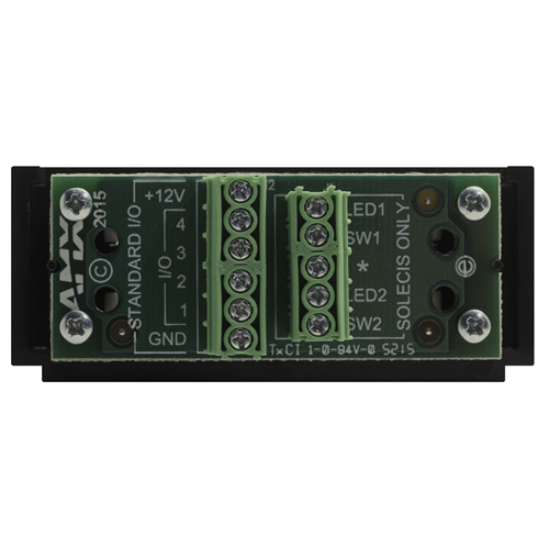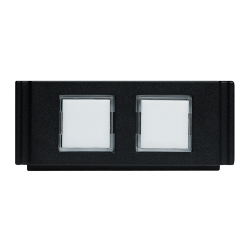 The HPX-U100-2BTN HydraPort 2-Button Keypad Module with LEDs is a HydraPort module with two buttons that enable users to switch to a specific device when pressed. The optional button inserts (FG554-08) are color coded to match similarly colored tags that clip onto the end of the cable where it plugs into the device, making it easy to identify which button selects which device. The buttons illuminate when a specific device is active, making it easy to determine which device's content is being shown on the display at any given time.