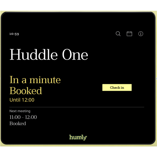 The Humly Room Display is the perfect interactive display for your collaboration spaces. Our meeting room booking solution will help you find the space you already booked, or guide you to one that is available right now.