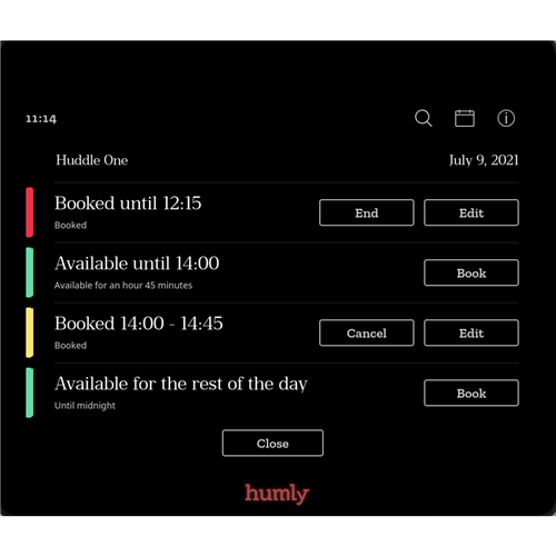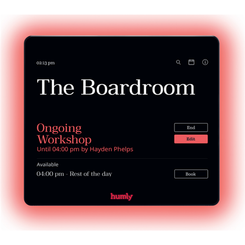 The Humly Room Display is the perfect interactive display for your collaboration spaces. Our meeting room booking solution will help you find the space you already booked, or guide you to one that is available right now.