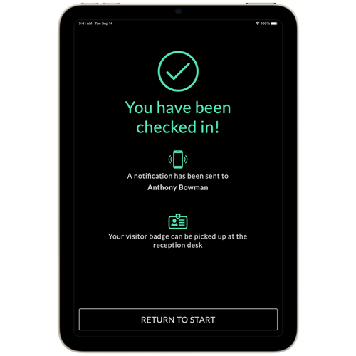 The new system can be used on a tablet and a printer can be connected to it for badge printing and SMS alerts can be used when a visitor arrives and checks in.