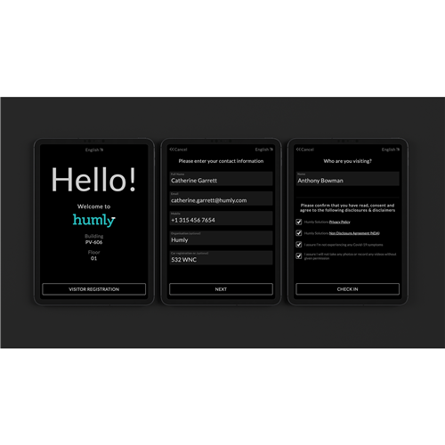 Receive your visitors with the welcoming simplicity of Humly Visitor. Let them check-in and approve of terms and conditions on any chosen screen, using a clean and elegant user interface.