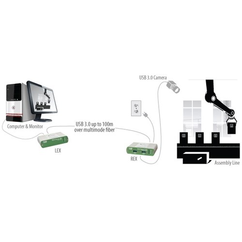 Take advantage of USB 3.0's blazing 5Gbps speeds up to 100m of distance over multimodefiber. Machine Vision cameras, security cameras, and storage drives can be extended whileproviding isolation and security.