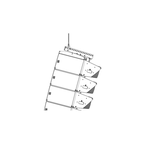 The SRX910LA AF is a lightweight and compact array frame used for suspending SRX910LA and SRX918SF arrays. The array frame was designed to work with single-point and front-back suspension methods. For single-point applications, the array frame can be used in conjunction with the VTX RC500 rotating clamp, allowing smaller arrays to be suspended from standard size trusses or pipes. The two-piece design is comprised of one extension bar and one spreader bar. The extension bar can extend to the front or rear of the frame to accommodate both uptilt and downtilt aiming options. Three connection points are available for attaching the extension bar to the spreader bar, allowing for precise control of shackle positioning for single-point applications. Support for third-party inclinometers is available using the included laser attachment bracket. The two parts can be collapsed easy for storage.