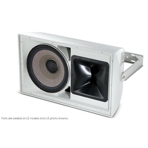 The AW595 is a high power, lightweight, 2-way, full-range loudspeaker system comprised of the JBL Differential Drive dual voice coil and dual magnetic gap 2265H-1 380 mm (15 in) low-frequency driver and 2432H high-frequency 38 mm (1.5 in) exit, 75 mm (3 in) voice-coil compression driver. The large format Progressive Transition wave-guide provides excellent 90° x 50° coverage. The waveguide is rotatable so the loudspeaker system can used in either the vertical or horizontal orientation. The system is equipped with a 400 W 70/100V transformer. A heavy-duty stainless steel U-type mounting bracket is included and allows for easy installation on flat surfaces or in 90° corners. The enclosure is constructed of multilayer glass composite and is heavily braced to maximize lowfrequency performance. The 14-gauge stainless steel grille, backed with open cell foam and stainless steel mesh, provides excellent protection in the harshest environments. The AW595 is part of JBL's AE Series, a versatile family of loudspeakers intended for a wide variety of applications.