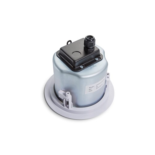 Control 12C-VA is a full-range, EN54-24 certified ceiling speaker consisting of a 76 mm (3 inch) full-range driver mounted in a vented, paintable baffle made of UV resistant UL94-V0 and UL94-5VB flammability-rated material, with a preattached blind-mount backcan for quick and easy installation. The speaker is designed to provide excellent sound quality for a wide variety of low to medium volume applications such as music cafes, business music systems, retail stores, music/paging systems, airports, reception/waiting rooms, lounges, courtrooms, convention centers, hotels, educational facilities, and more. The speaker delivers consistent sound quality for listeners located both off and on axis.