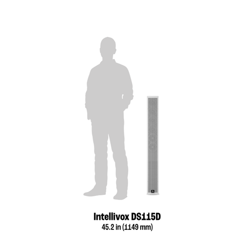The Intellivox DS115D is an active column loudspeaker array designed for sound reinforcement and public address in reverberant spaces such as conference rooms, boardrooms, lecture halls, theaters, and museums. It features JBL’s Digital Directivity Synthesis (DDS) Beam Shaping DSP technology, which allows installers to precisely define listener coverage areas with minimal reflections and maximum direct to reverberant ratio for clear, intelligible sound – even in the most challenging acoustic spaces.