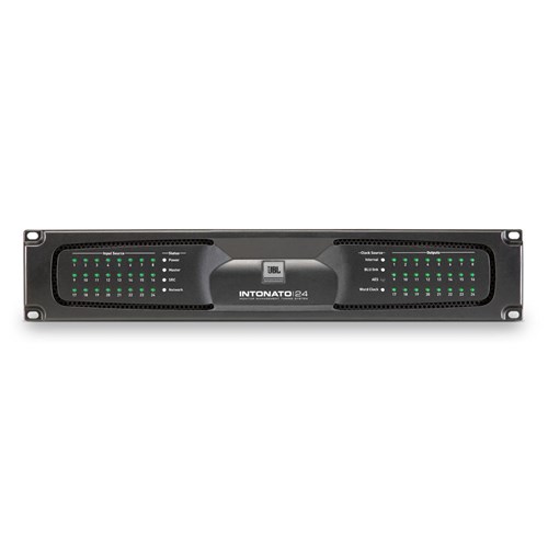 Intonato 24 pairs with JBL 7 Series studio monitors to create the first complete monitoring system designed for immersive audio production in control rooms of any size. While Intonato was designed as the hub of the new JBL 7 Series installed reference monitor system, the unit can be used with any passive or powered speakers. In addition, the HARMAN BLU link network protocol allows Intonato 24 to be digitally networked with Crown power amplifiers and a wide assortment of system components.