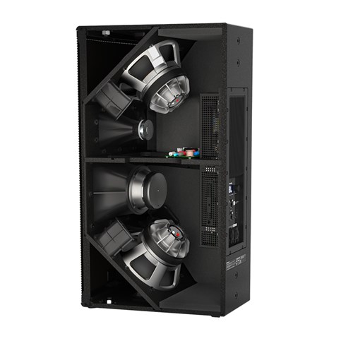 The SRX922 is a compact, acoustically three-way, dual 12-inch powered point-source loudspeaker engineered for applications requiring high output and precise directivity control from a trapezoidal full-range enclosure. It is an ideal choice for high-output mains systems, side-fills, or as a high-performance point-source element within larger SRX900 deployments.