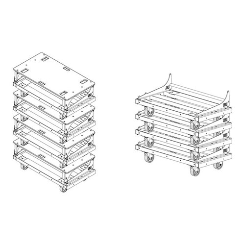 The VTX A12 VT Vertical Transporter is a robust, lightweight cart solution for vertically transporting up to four VTX A12 enclosures. The VTX A12 VT is constructed out of aluminum and steel parts and measures 45-inch (1143 mm) wide and 24-inch (610 mm) deep. Two attachment points are available on each side of the VTX A12 VT for connecting to the optional VTX A12 VT GND Ground Stack outrigger system. When used together, the VTX A12 VT becomes a fast and easy solution for deploying ground-stack arrays without having to remove the cabinets from the cart. The VTX A12 VT comes standard with a hard-top (VT-TOP) attachment that connects to the topmost cabinet of a stack to create a robust and defined footprint that stabilizes the carts during transportation and allows other gear to be placed above for maximum truck-pack efficiency. A reinforced protective cover is available (VTX A12 VT CVR) and supplied separately.