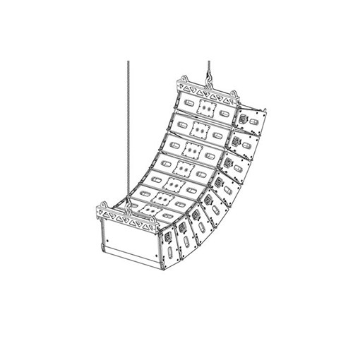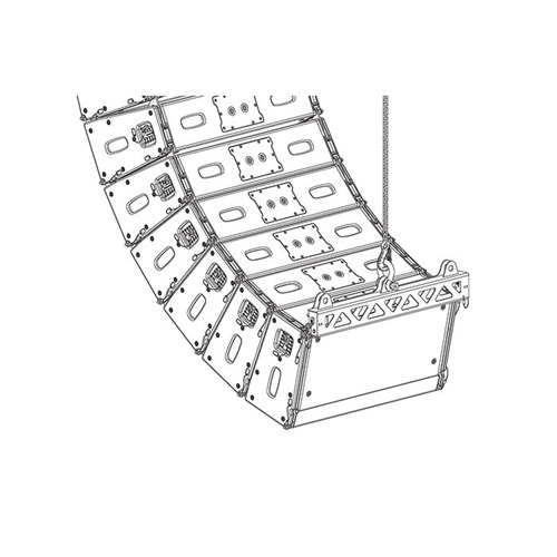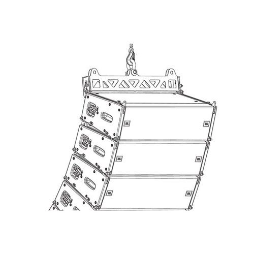 The VTX A8 SB accessory is a lightweight suspension bar that can be used as an array frame or to implement pull-back of a VTX A8 or B18 array. When used for pull-back, the VTX A8 SB can be attached to the bottom cabinet of an array and connected to a rear suspension point to allow for extra down-tilt, otherwise not possible using the VTX A8 AF alone. The VTX A8 SB can also attach to the top cabinet of an array and be used as a compact array frame. In this mode, the suspension bar connects to the top cabinet’s rear rigging points and the down-tilt angle is controlled by the number of cabinets and array geometry. JBL’s Line Array Calculator software application is used to calculate the down-tilt angle. For dual-point applications and added aiming flexibility, two VTX A8 SB suspension bars can be used: one at the top and one at the bottom of the array. The VTX A8 SB can support the weight of up to (24) VTX A8 or (16) VTX B18 enclosures (depending on array geometry) and a 5/8-inch shackle (included) can be attached directly to the bar.