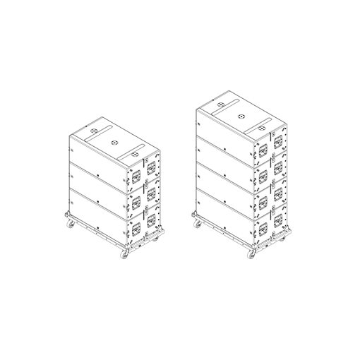The VTX B28 VT Vertical Transporter is a robust, lightweight cart solution for vertically transporting up to four VTX B28 enclosures. The VTX B28 VT is constructed out of aluminum and steel parts and measures 57 inches (1448 mm) wide and 32 inches (813 mm) deep. Stacks of two, three, or four B28 cabinets can be transported in either front-firing or cardioid configurations. The VTX B28 VT CVR, a reinforced protective cover, is available separately. The B28 VT includes mounting holes on each side for attaching to the VTX A12 VT GND outrigger system. The GND attachment provides additional stability for taller B28 ground-stacked arrays or in mixed groundstacked configurations with B28s and supported VTX full-range cabinets.