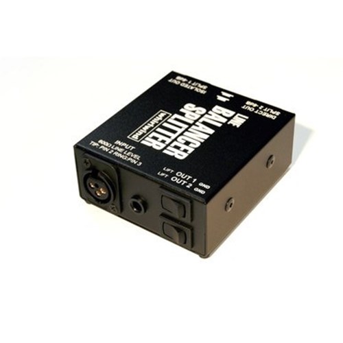 This handy tool balances and isolates a single line level signal or lets you send a line level signal to two destinations with transformer balancing and isolation for one or both of the outputs.