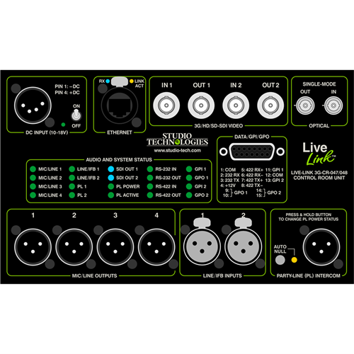Studio Technologies Live-Link 04X Series - Control Room Unit - Party Line Intercom - Rack-Ready - Two ST Optical Connector