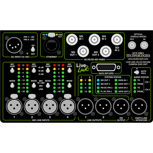 Live-Link "05X" Series: Supports Five Paths of 3G Digital Video, Four Mic/Line Inputs, Line/IFB Outputs, and Party-Line Intercom