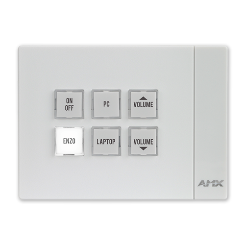 The MCP-106 / 6-Button Massio™ ControlPad is a high performance ControlPad that combines AMX control and a stylish keypad into a single unit that can be mounted in a standard 1 gang US, UK or EU back box to provide dedicated room control. Massio ControlPads provide high performance, intuitive usability and modern styling, and are simple to configure using AMX's Rapid Project Maker or custom programmed using NetLinx Studio software.