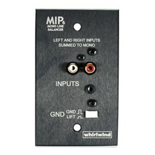 The MIP6 is a stereo to mono line converter and balancing device. Stereo inputs can be connected to the 3.5mm TRS jack or the left and right RCA jacks. The inputs are permanently summed to mono and balanced with a single 1:1 transformer. A single 3 pin screw terminal plug is provided for output connection. A Ground Lift switch breaks the ground connection between the inputs and the output screw terminal. Insertion loss is approximately 1.7 dB for summed inputs and 7.7 dB for a single mono source, measured into a 2 kOhm load. Part #MIP6S Clear; #MIP6B Black