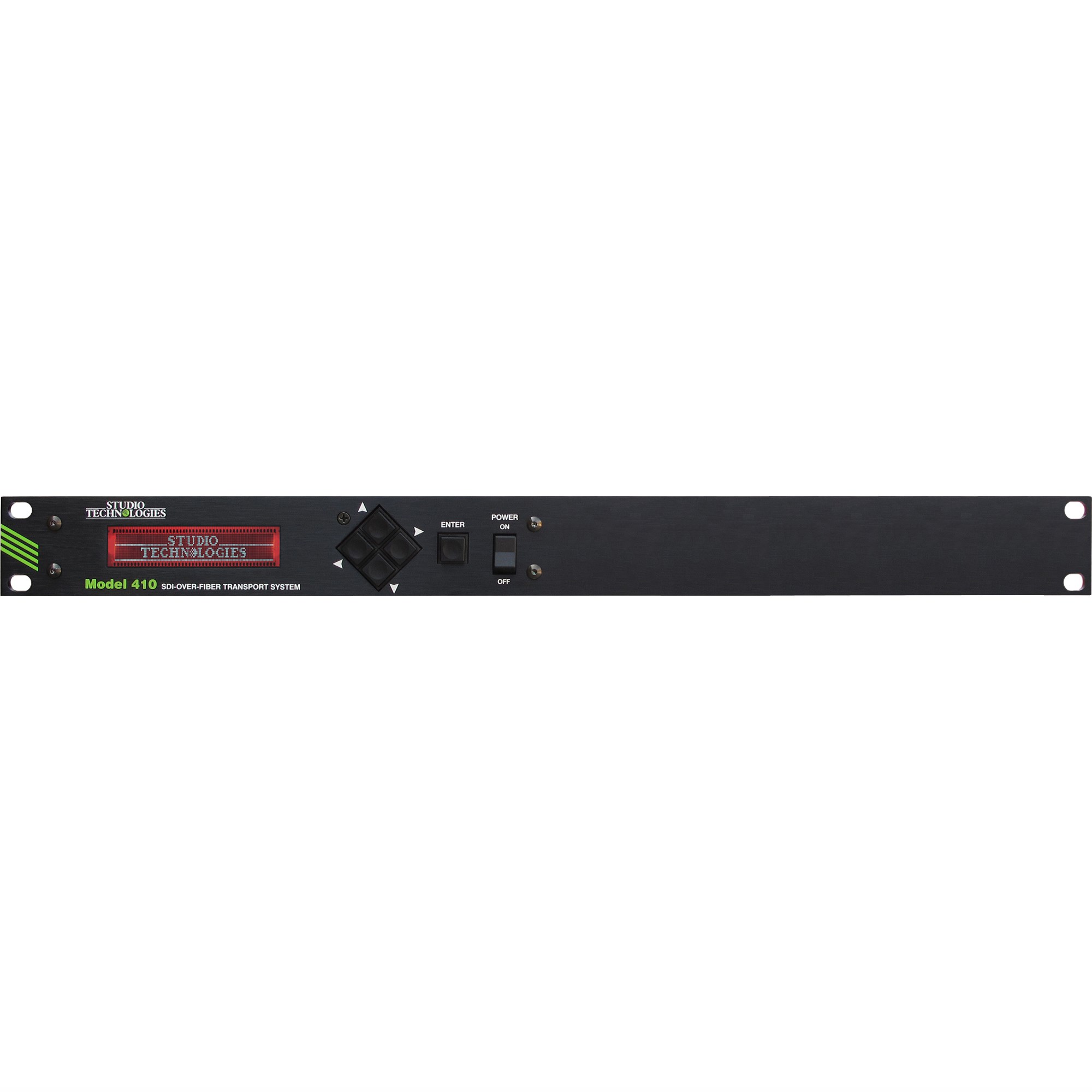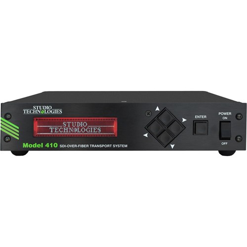 The Model 410 SDI-Over-Fibre Transport System is a high-performance, cost-effective "throw-down" or rack-mounted solution for distributing digital video signals over short and medium distances. The system is compatible with all common broadcast serial digital video formats and is suitable for use in remote trucks, live-event video distribution, and fixed links associated with broadcast and production facilities. Three Model 410 versions are available, providing a range of input and output configurations. The SDI transport capabilities, user support features, and compact form factor make the Model 410 a highly unique product.