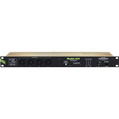 In many cases, the Model 42A Interface will be used in on-air television applications. Whether installed in a fixed location or as part of a mobile facility, the unit is capable of providing excellent performance. In addition, the Model 42A can be used for non-broadcast applications. For example, audio recording and post-production facilities can also effectively use the Model 42A. Combined with stereo or mono listen-only beltpacks, also available from Studio Technologies, a variety of headphone cue systems can easily be deployed. And since the Model 42A's audio inputs are compatible with standard line-level audio signals virtually any analog source can be connected.